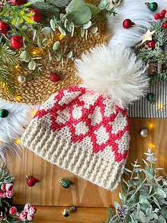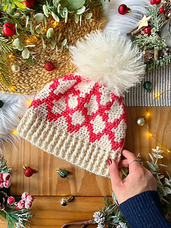 The Merry Hat is a beautiful tapestry crochet hat featuring a beautiful diamond design. The pattern is quick to work up and makes a perfect gift for Christmas or for the whole family!
