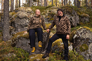 Metsän väki-paita ja villatakki samasta ohjeesta. Koko (vaatteen rinnanympärys) 80-90-100-110-120-130-140 cm, suositeltu väljyys vähintään 15 cm.
