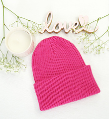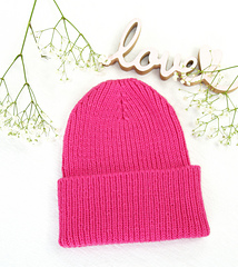 The beanie is worked in 1x1 ribbing and offers a variety of styling options as well as choices for round or square crowns.