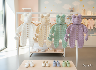 The matching bobble hat and Booties perfectly match this beautiful romper.