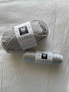 Glitter: 100 (100) 100 (100) 150 (150) 150 (200) grams corresponding to 2 (2) 2 (2) 3 (3) 3 (4) skeins.