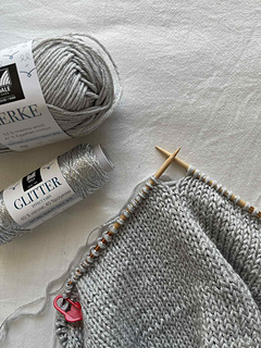 The Mica top light is a lighter version of the original Mica top which is a festive top with shimmer. Mica top light edition is worked top-down in 1 strand of Lerke and 1 strand of Glitter, both from Dale Garn. It is worked on 4,5 mm needles.