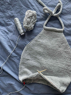 The top has a gauge of 10x10 cm on 18 sts x 20 r on 4,5 mm needles in stockinette stitch.