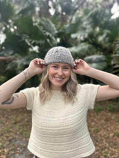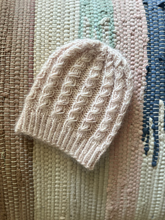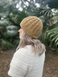 The lighter version of my popular bulky “Michelle” hat. This hat is soooo soft and it folds down so small! Perfect for keeping in your jacket pocket for when the temp drops. This is THE hat to gift to all of your friends and family. Just like it’s bulky counterpart the Michelle light boasts a simple cable design that can be knitted without a cable needle. Directions are given for a standard or rolled brim.
