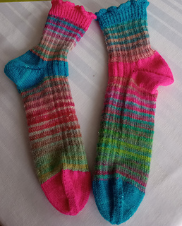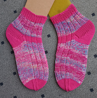 Midi Toes are ribbed socks with unusual toes. You can knit these socks in 1 or 3 colors. The socks are worked from the cuff down. After the ribbed leg you knit a short row heel and continue the ribbed pattern to the toes.
