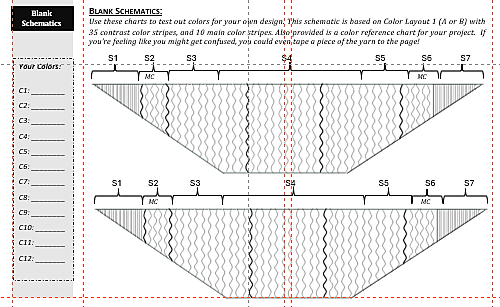 As with all my patterns, the Design Modification Section includes several yarn possibilities, including how to use a 12x80yd set, a 7x133yd set, or 10x80yd set for the contrast colors, making this three patterns-in-one It is also a flexible pattern that you can knit several times with different outcomes!