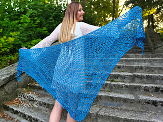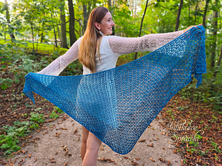 Construction: Triangular shawl knit from the base, increasing along the two shawl wings/edges.