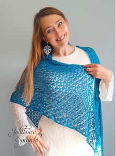 Konstrukcja: trójkątna chusta dziergana względem podstawy po ramionach trójkąta.