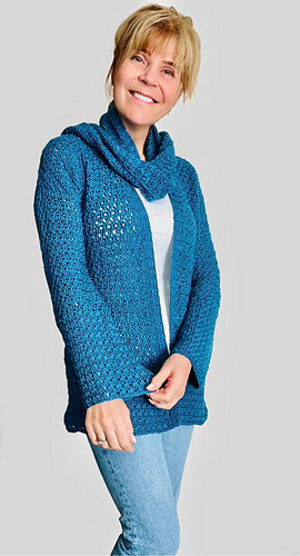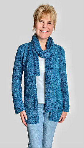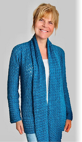 Embrace timeless elegance with this crocheted ensemble. The cardigan has lovely stitches that are simple and drape beautifully. The matching scarf adds a touch of grace. Crocheted for comfort AND style; from a casual brunch to an evening soiree , you will have heads turn either way! ;)