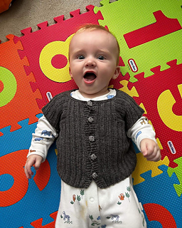 Everyone knows how quickly babies grow, and consequently how soon they grow out of their precious handknits. With that in mind, I set about designing this cute vest which would shrink to hug a tiny little body, but expand to fit the baby as they grow.