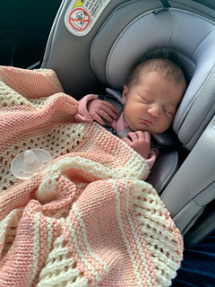 This is an easy and quick knit blanket perfect for a baby gift that will be treasured by your loved one. It is the perfect pattern for trying color work with easy garter stitch stripes and a simple lace pattern.