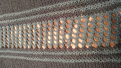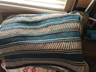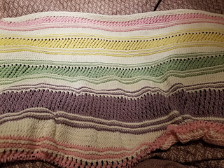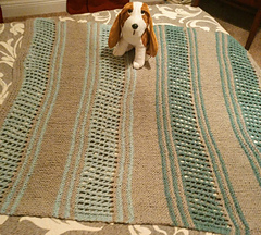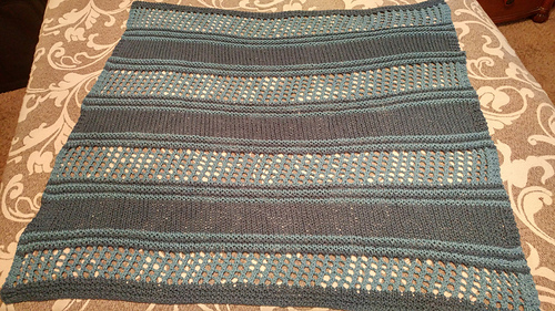 Because of the simplicity of this pattern you could easily modify it and make a larger blanket / throw by increasing/ decreasing your cast on (by an even number of stiches) and repeating more sections.