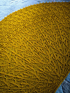 Textured shawl with very elaborate, delicate pattern that is worked exclusively with increases and decreases. The pattern is fully written, line by line; there are no charts.