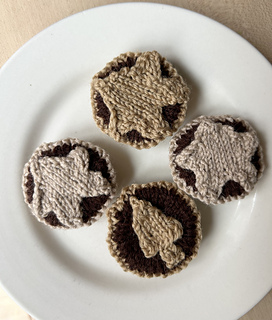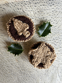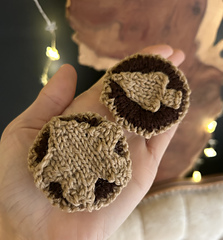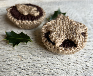 This mince pie is knitted flat on two needles and sewn together.