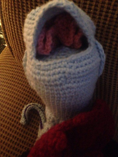 This is a large Mind Flayer creature (from D&D) with a removable brain. Final product is over a foot tall (when using recommended hook and yarn).