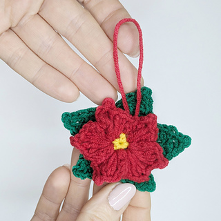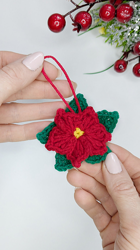 This cute crochet Christmas flower is perfect for holiday decorations, Christmas tree ornaments, gift wrapping, garlands, brooches, or even keychains.