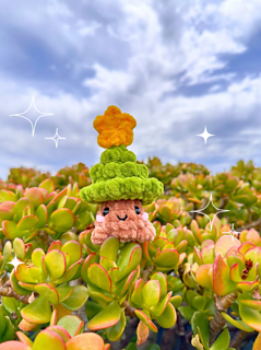 - Yarn colours: Green, brown, white, red, pink for cheeks and black for mouth.