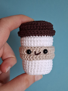 This listing is for a PDF crochet pattern to make a cute mini coffee cup. The finished piece is small and perfect for a keychain or desk decoration.