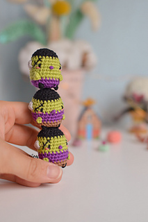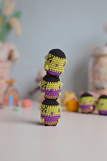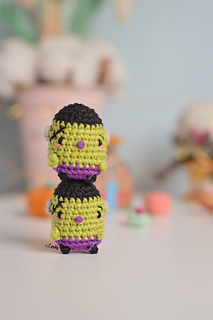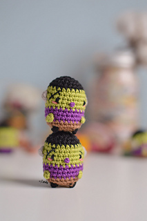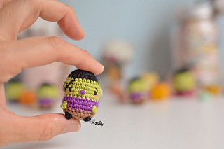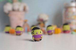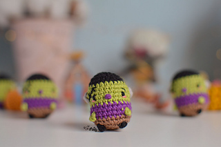 Con la ayuda de este patrón podrás tejer un montón de mini Frankies amigurumi, amigurumis adorables hechos a mano por ti. El patrón es fácil de seguir con muchas fotos del paso a paso de todo el proceso.