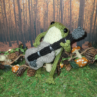 A tiny knit guitar sized to fit Dotpebble’s frog — perfect for woodland concerts and storybook serenades. Knit in the round with a touch of embroidery for details. Quick to make, with whimsical charm.