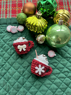 Follow this pattern to learn how to crochet adorable mini mugs. They are the perfect size for Christmas ornaments, keychains, stocking charms, gift charms, decor, even festive accessories for toys!