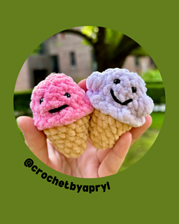 This is a PDF of my free pattern on Instagram for the Mini Ice Cream Buddy. It has instructions for including arms or no arms. It is the perfect size for a keychain and works up super fast for markets.