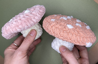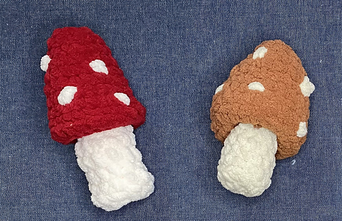 This pattern comes with 2-in-1! You can make a pointy top and a flat top mushroom. Want a keychain size? Use a smaller hook! Want a bigger ‘shroom? Use bigger yarn with a bigger hook. There are endless possibilities with these guys!