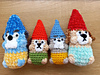 In 8ply/DK yarn with a 3.5mm hook (E size) the gnomes are approximately 11cm/4.5 inches tall
