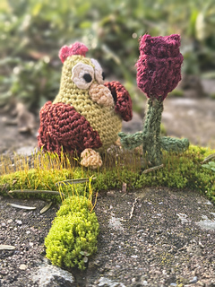 My rose petals are knit in the round on dpns in one piece and then popped up into shape. Their center is a small i-cord that is easily stitched in place. The stem and leaves are also i-cords that are made by picking up stitches. For a sturdy stem just add a toothpick! Happy mini-rose-knitting!