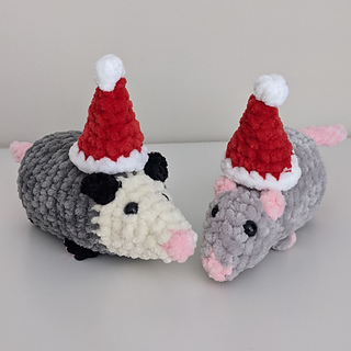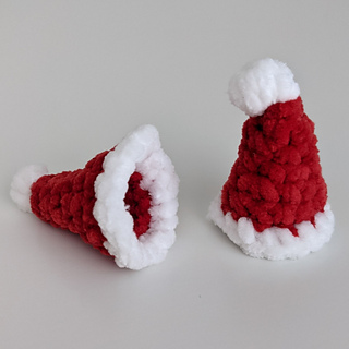 This is a crochet pattern for miniature Santa hats that you can add to your crochet plushies for the holidays! You can either temporarily attach the Santa hat with a bobby pin as shown, or sew it to your plushie of choice. You need chenille yarn in red and white for this pattern, but you could of course make them in any color you’d like!