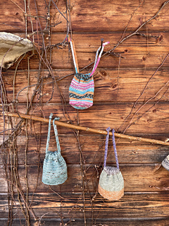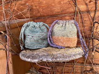 One of those cute bags uses just under 20 grams of fingering weight yarn.