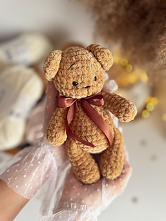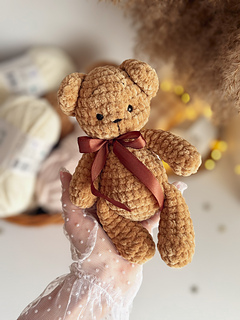 Create your own soft and cuddly teddy bear with this beginner-friendly crochet pattern! This plush amigurumi bear features a sweet minimal face, chubby body, and adorable ribbon detail - perfect for baby showers, nursery decor, or a heartfelt handmade gift.