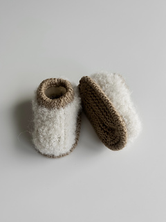The Mini Teddy Slippers are easy and fun to make! They are worked bottom up, in 2 different materials.