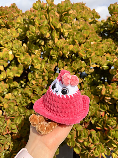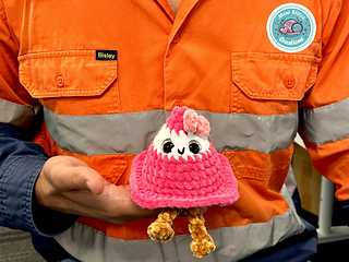 -Yarn colours: Bright Pink, White, Brown (legs) and Pale Rose Pink (bow).