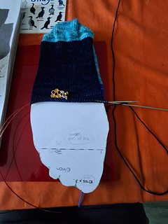 choose the size of foot closes to your measurement over the ball of the foot. I like to draw around the foot of the person I am making for so that I can have the measurements to hand and try the sock on as I go. without having to wait for that person.