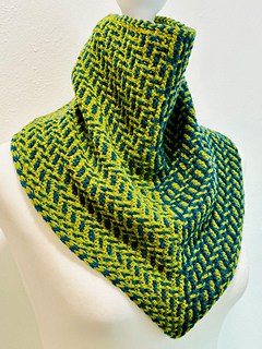 This is a great two skein project, perfect for knitters looking for a project that is both meditative and bold, this cowl adds sophistication to any outfit. Choose your favorite contrasting colors to make the mirage come to life!
