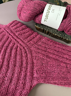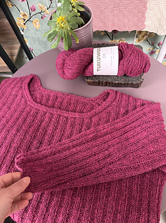 Miranda is a top-down sweater worked from the top down, featuring a drop shoulder and a design of ribbing and 2-stitch cables. Elegant and modern, it is a perfect piece worn over trousers or jeans, and becomes stunning over a dress or a deconstructed skirt, making the look unique and personal. With a relaxed fit on the body, it is easily customizable according to your taste and body proportions. Try the sweater on as you go and don’t hesitate to make those personal adjustments that will turn it into the perfect piece you love to wear and that makes you feel good.