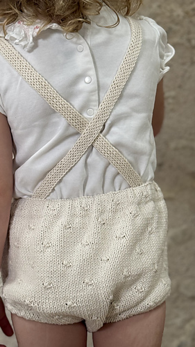 Ce modèle peut être tricoté avec ou sans bretelles, pour s’adapter à tous les styles et à toutes les aventures de vos petits.