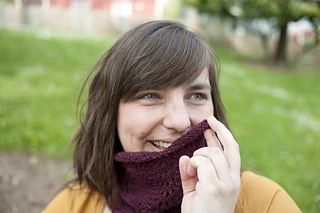While I realize that every piece of carefully-crafted knitwear I have ever given my sister will spend its life in the basket of “winter extras” at our parents’ house in New England, waiting for an ill-prepared guest to request some wardrobe fortification, I still sucker myself into knitting for her. This cowl is the perfect example of gift knitting: mindless enough that I’m not stressed by making it, coupled with a yarn that’s thick enough for quick progress; a pattern that marks progress and makes pleasing shapes; and an excuse to use a precious skein of hand-dyed yarn from one of my very precious stash.