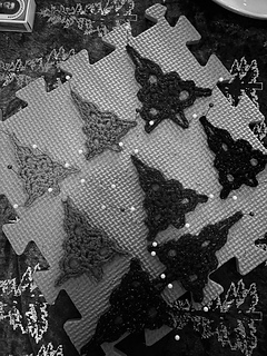 Create a crisp and defined look with blocked cotton or wool, or go for a soft, sparkling effect using acrylic yarn with glitter. It’s a wonderful scrap-buster project!