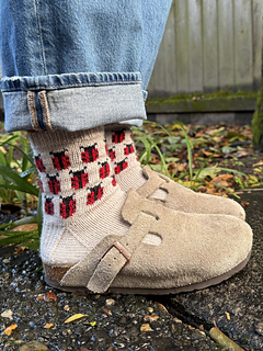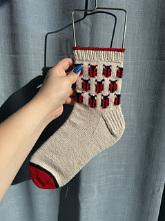 You’ll begin with the cuff, starting with a Cast On, then working a Rolled Hem for a subtle curl, and finishing with a stretchy Ribbed Cuff. As you progress, you’ll knit the Ladybug Colorwork leg of the sock. The pattern then guides you through the classic Heel Flap and Gusset method, concluding with clear instructions for Toe Decreases and a seamless Kitchener Stitch finish.