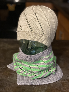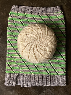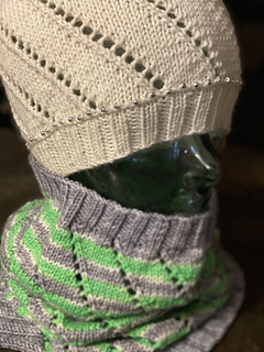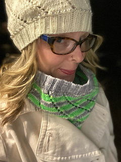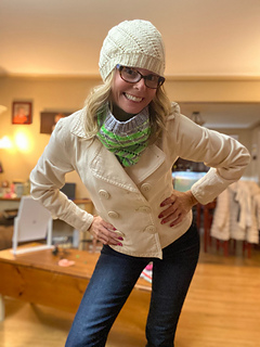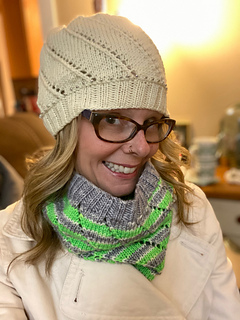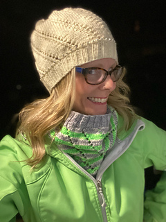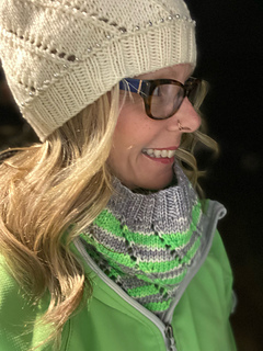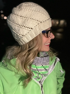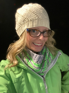 Meet Miss Meni! Between the swirls that have been swirling in my head, and the sudden onset of an out-of-nowhere rollercoaster of “temperature spikes” (I am 2 1/2 years away from the big 5-0, if you know what I mean ;0) I am also a lifelong Washington state girl (born and raised!) and have , literally, LIVED in beanies more than half the year, for most of my life. So, with my barometer going slightly haywire, these days, and the panic setting in (realizing that I just cannot see a world without my beautiful beanies!) I went STRAIGHT to my stash, grabbed my needles, and began my mission: a fabulous beanie…with built-in “Meni” A/C! Who doesn’t always love the best of both worlds, anyway? It truly makes my day when I get to see photos of Ravelers knitting my designs. So, by all means, blast me with any and all photos! I also love adding them to my publications! And don’t forget to check out the matching cowl: Meni Me!