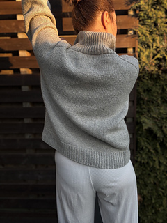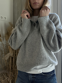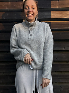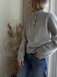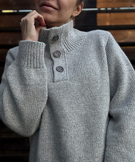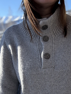 The Mistfall Sweater - modern knitted sweater with a high neck and button placket, worked bottom-up in worsted weight yarn for a cozy, timeless fit.