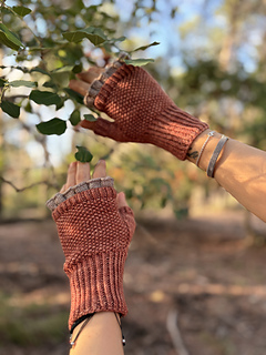 Las Mitones Coquette están tejidos en circular, con un elástico retorcido largo y una textura sencilla.