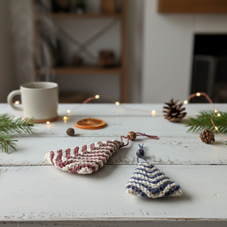These simple decorations also double up as gift tags for that special Christmas gift. The pattern uses garter stripes and simple shaping, so they’re suitable for any skill level.