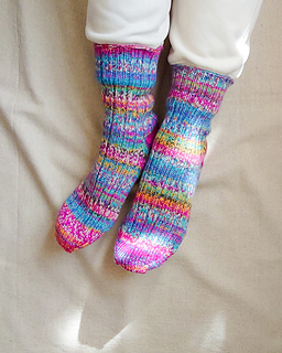 色遊びは楽しくて癒される。この楽しさを味わってほしくて、靴下編みのパターンを書き起こしました。靴下を編んだことがない人でも手軽に簡単に編めるシンプルなつくりです。
