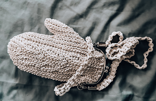 This crochet pattern contains instruction with step-by-step on how to make the mitten handbag.