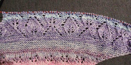 Ce châle a été créé pour une amie passionnée des plantes qui aime prendre soin de l’environnement. J’ai donc décidé de le faire à partir de restants de laine. Je me suis inspirée de motifs horticoles que j’ai vu dans d’autres créations que j’ai adaptés à ce petit châle.