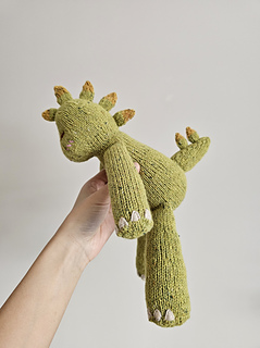 All parts of Mochi Dino are knit in the round using double-pointed needles (DPNs) or circular needles (magic loop), then stuffed and sewn together. The facial features and nails are embroidered after assembly, adding character and a handmade touch to every Mochi Dino.