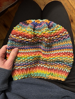I have made this as a slouchy beanie as well as a regular fitted beanie, I changed the repeats to approximately 10 rows of each pattern type, i.e. ribbing, seed, and stockinette.